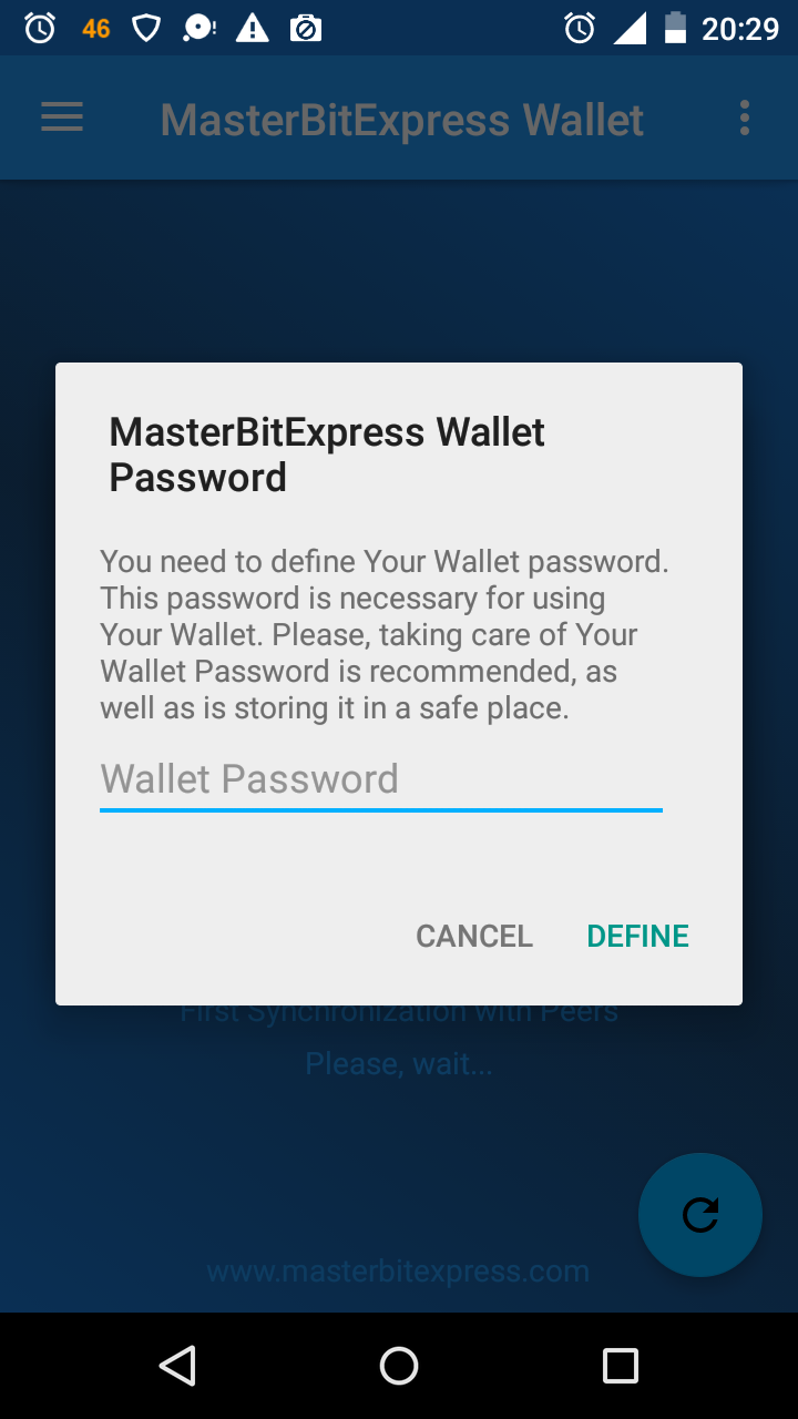 Get It OnContact usDefining the MasterBitExpress Wallet password is a required condition for managing its Bitcoins